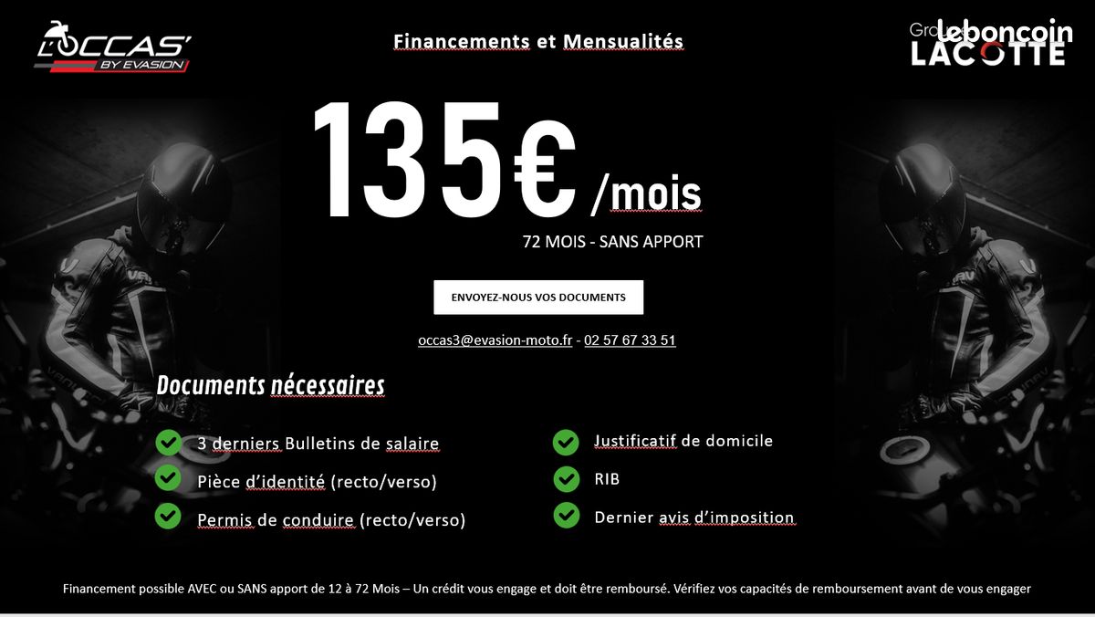 Cette moto est disponible à partir de 135€/Mois SANS APPORT